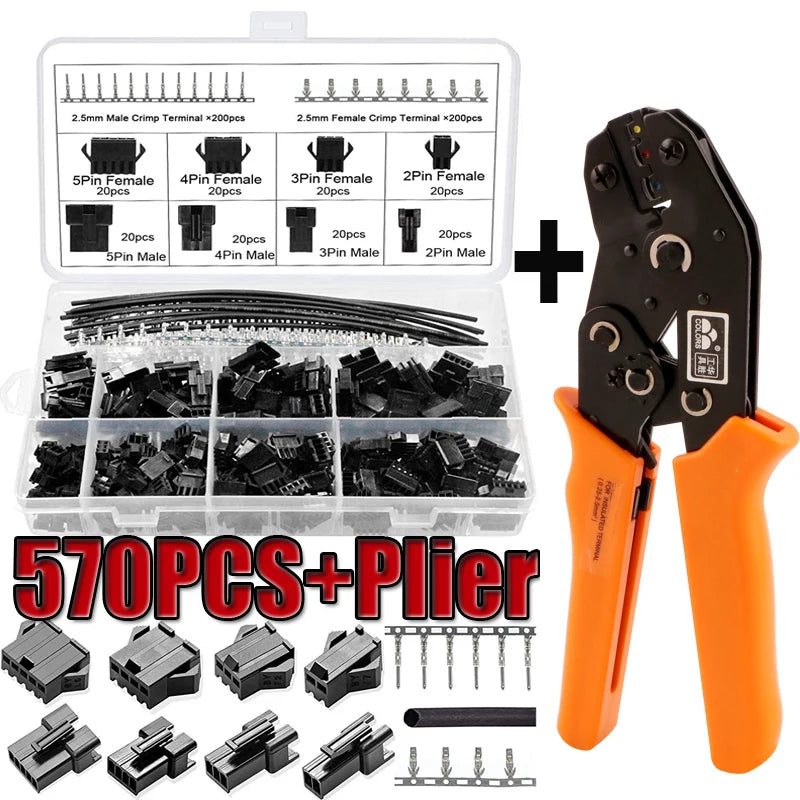 570pcs Terminal 2 3 4 5 Pin Wire Connector 2.5 mm Pitch Male and Female Connector Adapter+1PCS Terminal Crimping Pliers