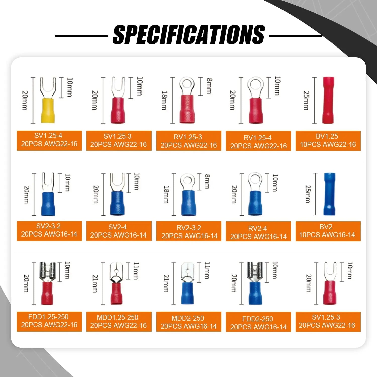 Assorted Spade Terminals Insulated Cable Connector Electrical Wire Crimp Butt Ring Fork Set Ring Lugs Rolled Crimping tool Kit