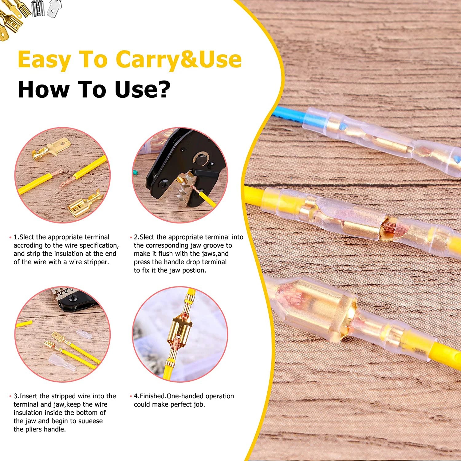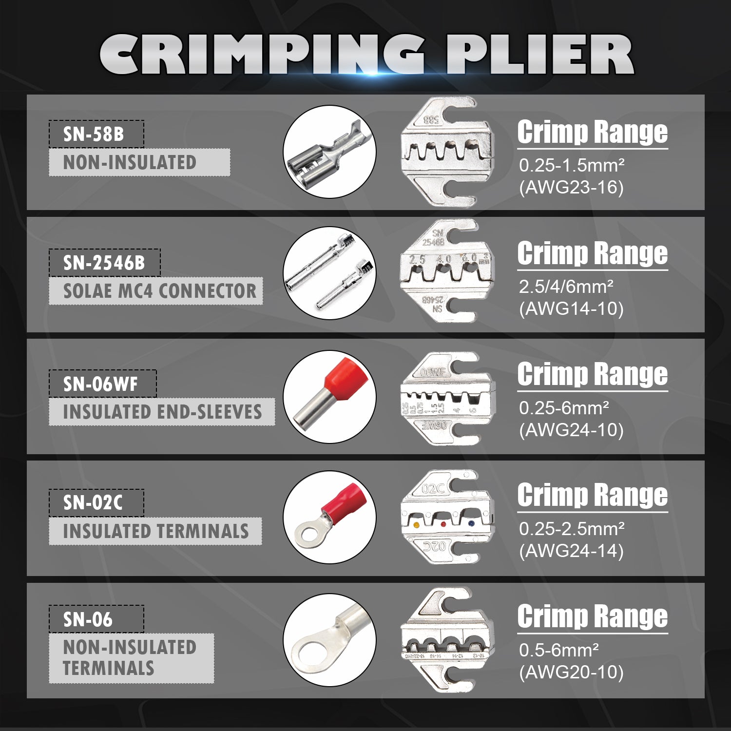 Ratcheting Crimper Tool Kit,Automotive Service Kit,for Crimping Photovoltaic Connector,Insulated & Non-insulated Terminal,Open Barrel Terminals,Dupont Connector,End Sleeve Ferrules